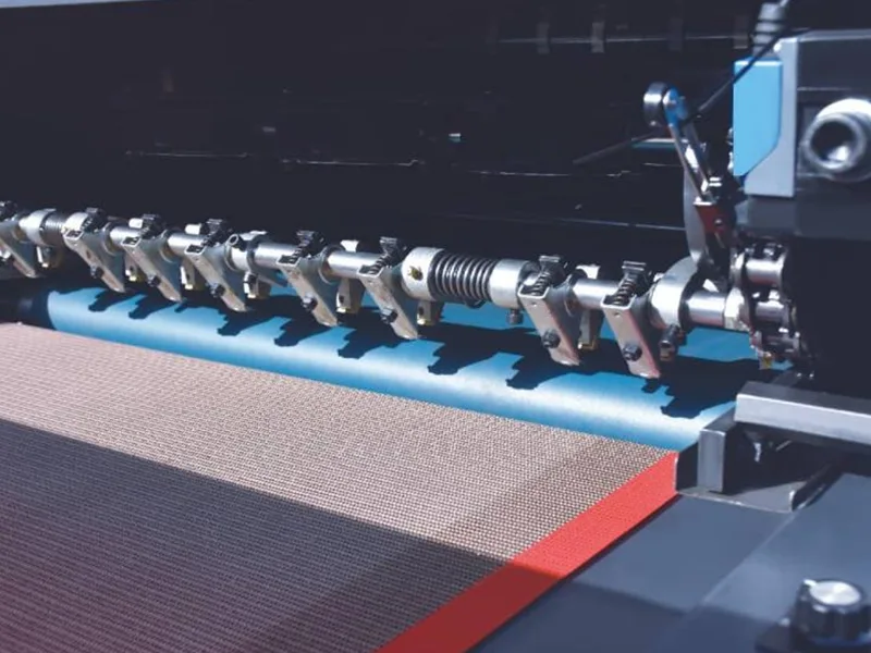 - Sabuk conveyor Teflon kanthi sistem koreksi penyimpangan otomatis.